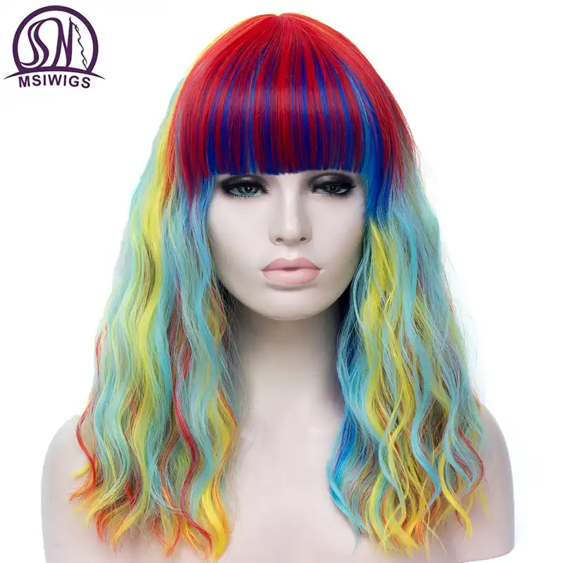 Msiwigs Lolita Long Wavy Rainbow Wig With Bang High Temperature