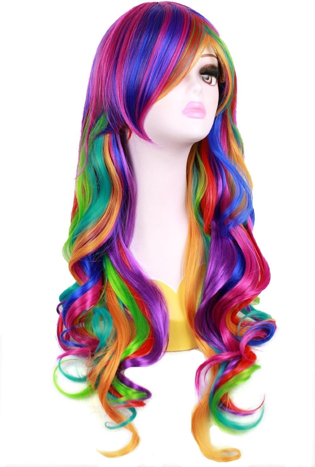 Amazon Com Beron 27 Long Wavy Rainbow Wig For Halloween Cosplay