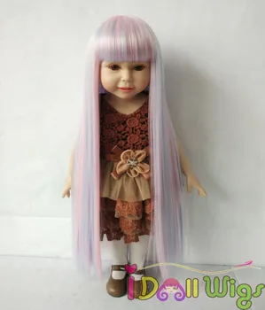 Amerika Gadis Boneka Wig Bermimpi Rainbow Pink Lurus Lembut Rambut