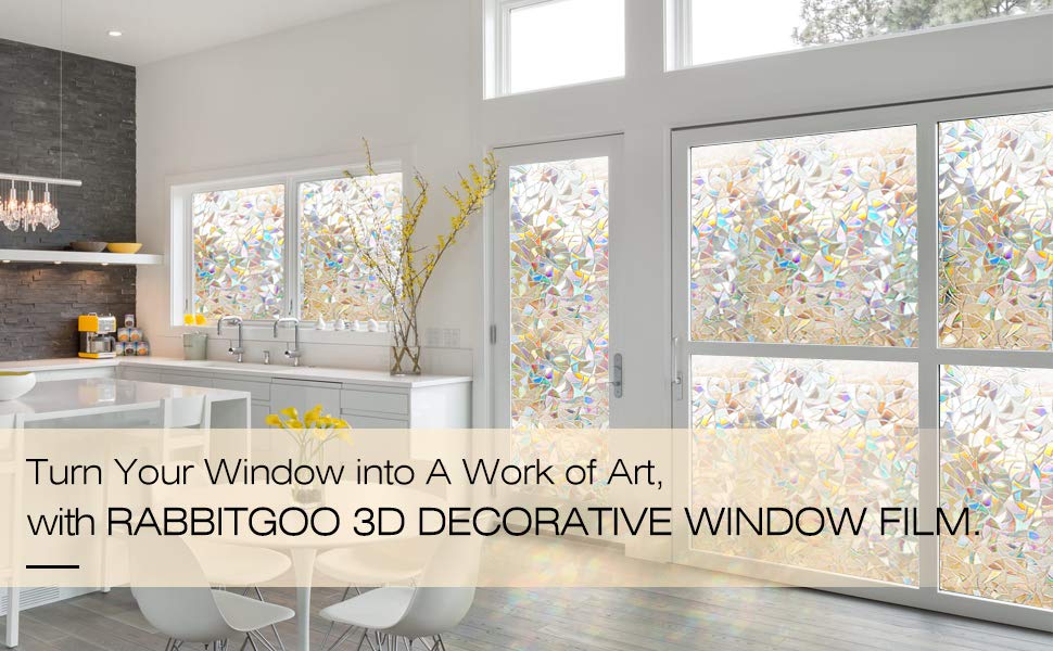Rabbitgoo 3d Non Adhesive Window Film Decorative Privacy Static