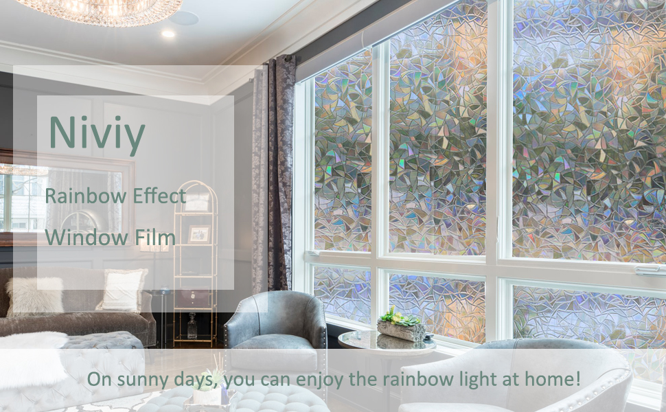 Rabbitgoo Rainbow Window Film 3d No Glue Decorative Window Film