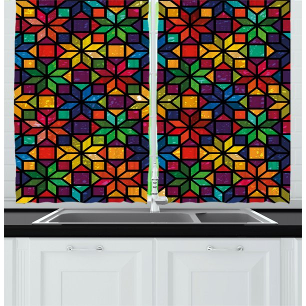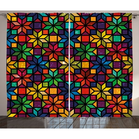 Geometric Curtains 2 Panels Set Church Window Glass Inspired