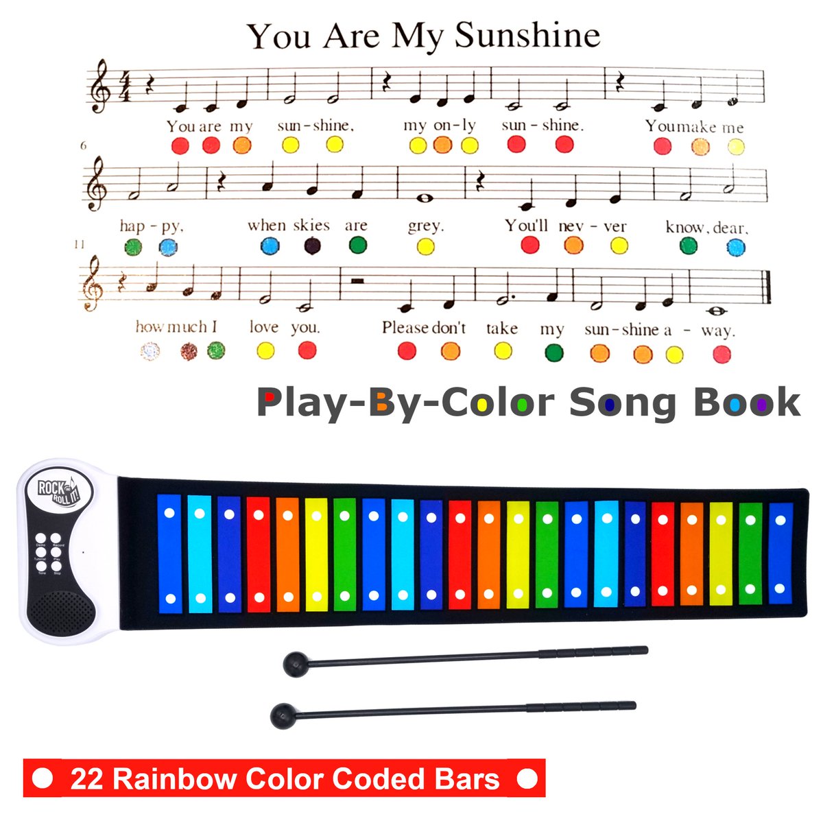 Amazon Com Mukikim Rock Roll It Rainbow Xylophone Portable Flexible Standard Size Electronic Pad With 22 Color Coded Bars Song Booklet Usb Or Battery Powered Built In Speaker Audio