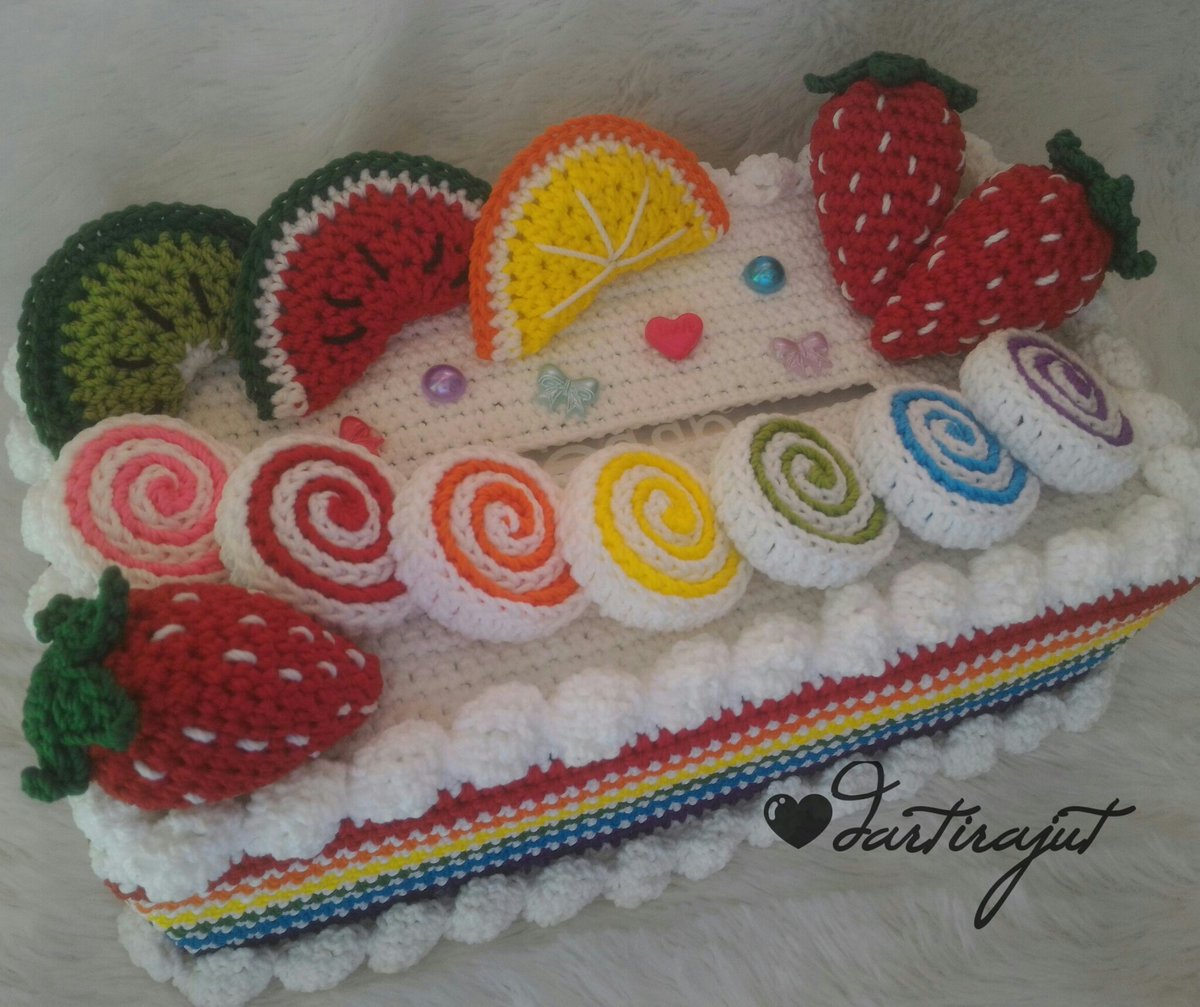 Darti Rajut On Twitter Crochet Tissue Box Cover Rainbow Cake