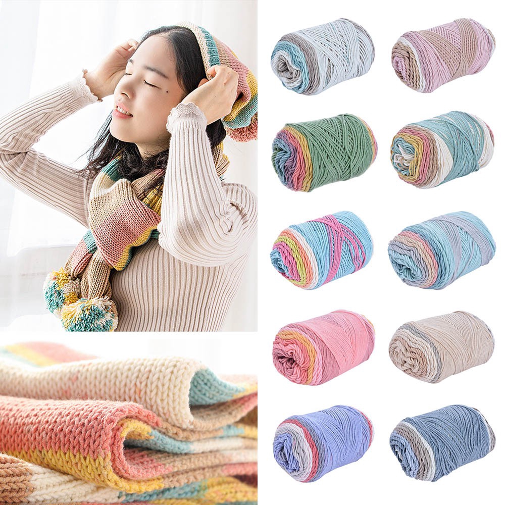 100g Rainbow Cotton Yarn Soft Knitting Crochet Thick Yarn Shopee