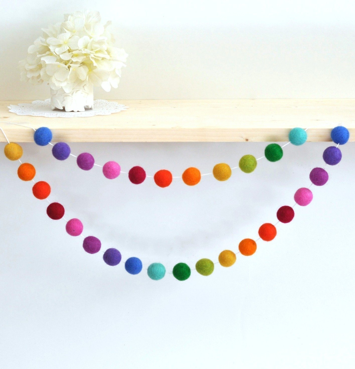 Amazon Com Handmade Rainbow Felt Pom Pom Garland In Bright And