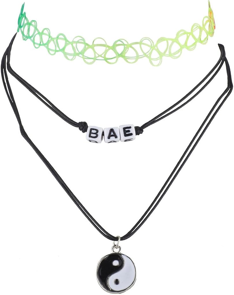 Amazon Com Lux Accessories Rainbow Tattoo Ying Yang Bae Verbiage Choker Set 3pcs Jewelry