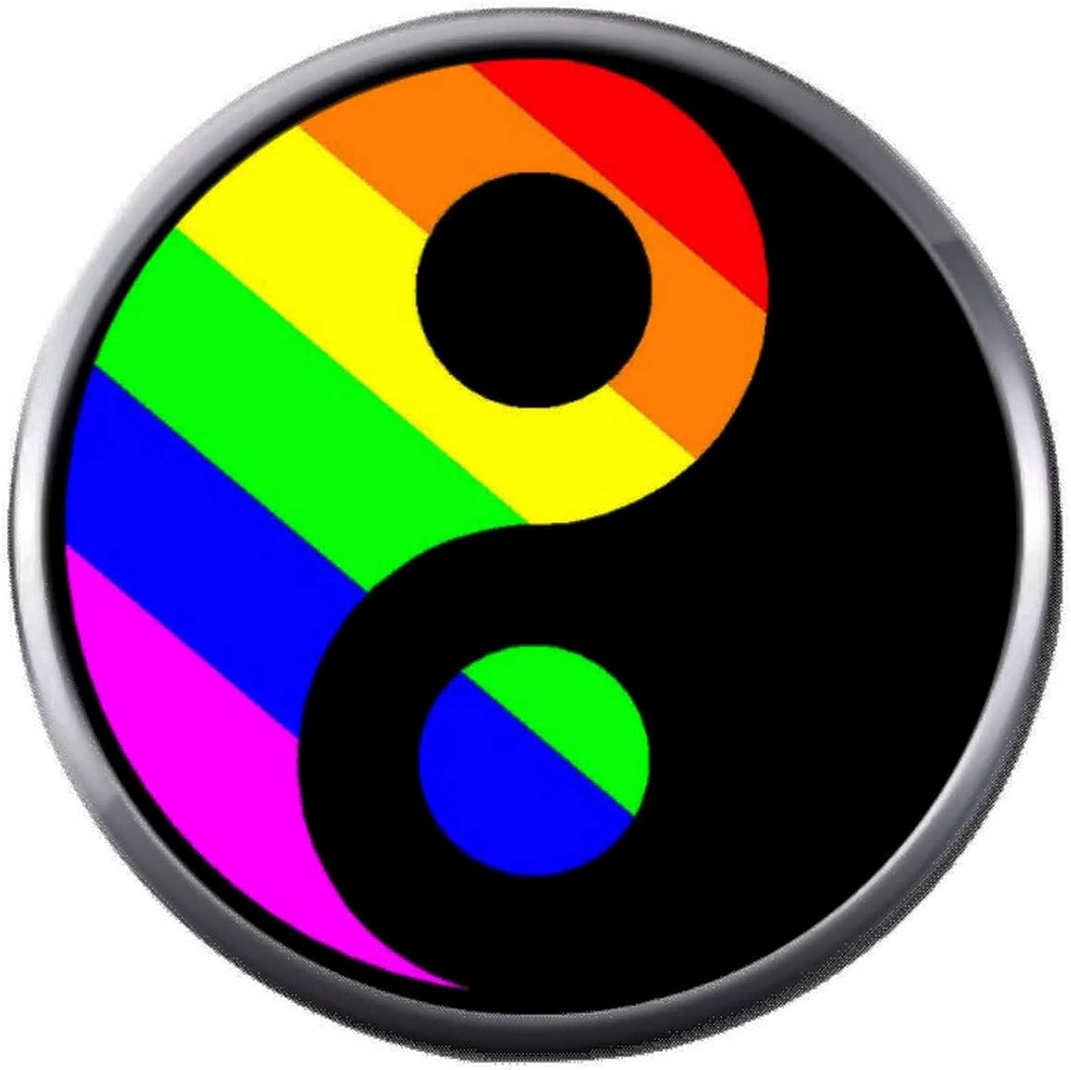 Rainbow Yin Yang Metal 1 1 Inch Diameter Gay Lesbian Pride Button