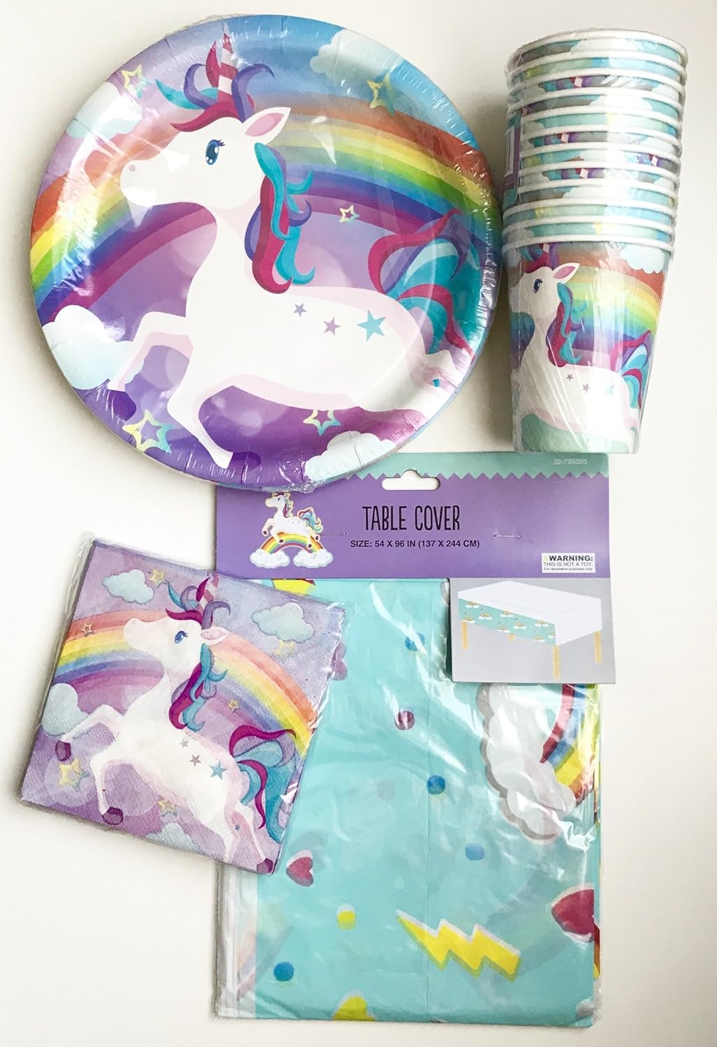 Amazon Com Yt Creations Unicorn Rainbow Kids Party Supplies Pack 12 Person Tableware Paper Plates Napkins Cups Plastic 49pc Table Cover Home Kitchen