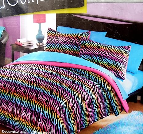 Girls Rainbow Zebra Animal Print Bedding Comforter Sheet Set Twin