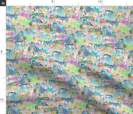 Amazon Com Spoonflower Fabric Zebra Rainbow Small Scale Animal Print Horse Zoo Africa Watercolor Printed On Minky
