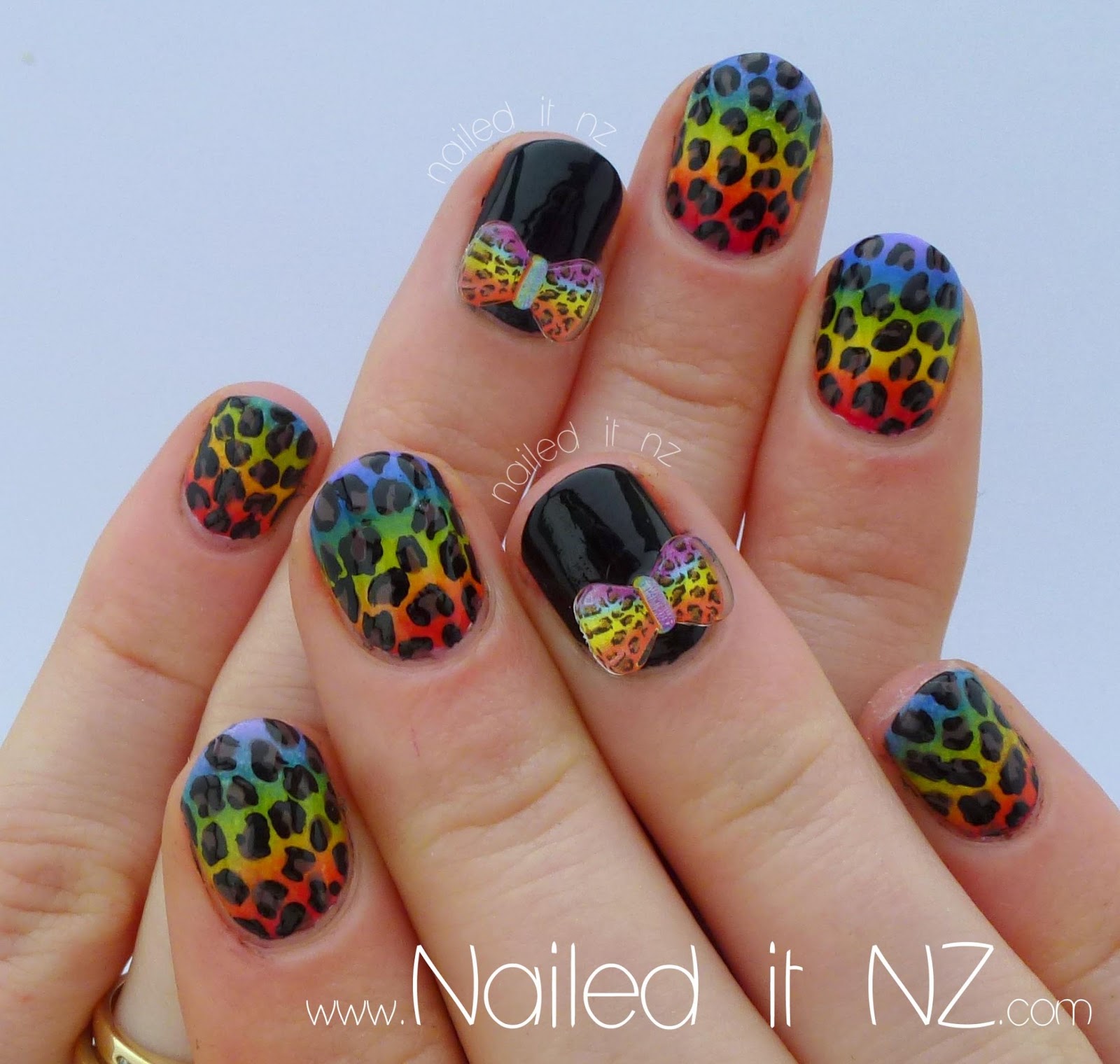 How To Make An Easy 3 D Bow On A Rainbow Animal Print Nail Design
