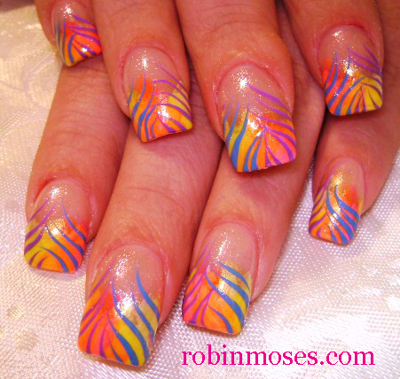 Nail Art By Robin Moses Neon Zebra Print Nail Art Zebra Nail Art