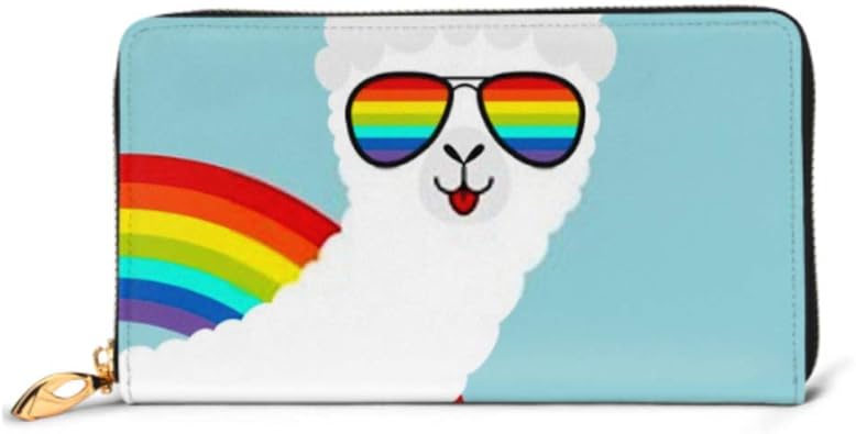 Fashion Handbag Zipper Wallet Alpaca Llama Animal Face Rainbow