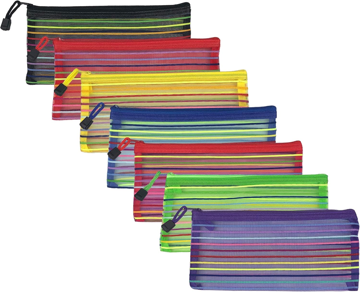7 Pcs 7 Colors B6 Size Mesh Zipper Pouch Rainbow Nylon Pencil Pen
