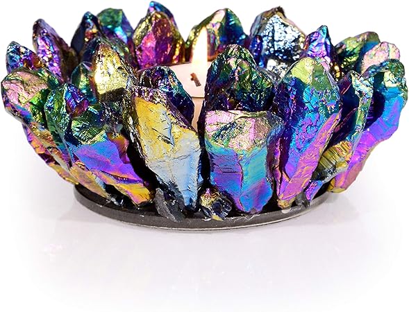 Amazon Com Kalifano Rainbow Quartz Cluster Crystal Tealight