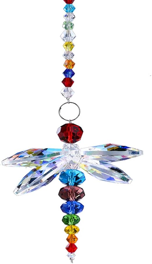 Set Of 2 Crystal Chakra Colors Beads Dragonfly Prisms Hanging