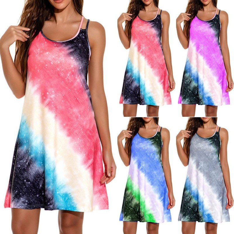 Plus Size Women Rainbow Galaxy Sleeveless Tank Dress Summer Beach