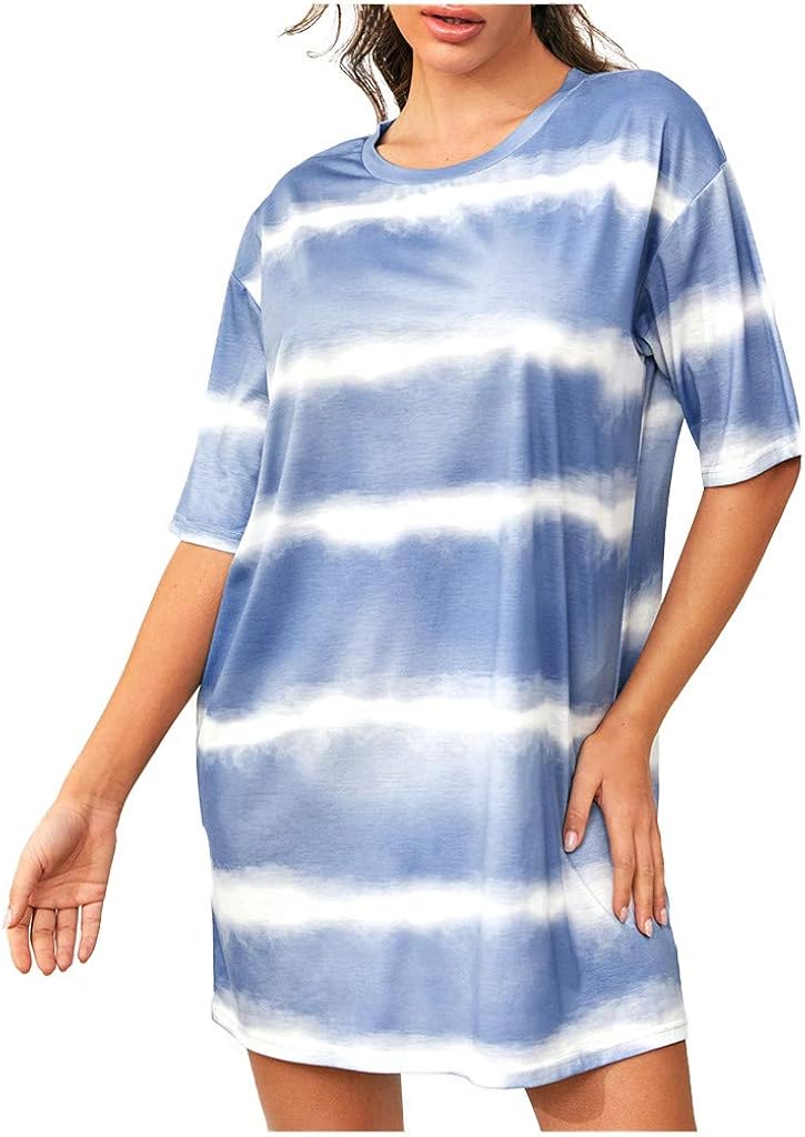 Summer Plus Size Rainbow Tie Dye Dress Casual Women Clothing Off