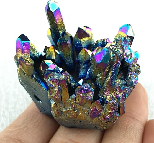 Amazon Com Sunyik Rainbow Aura Titanium Coated Crystal Cluster
