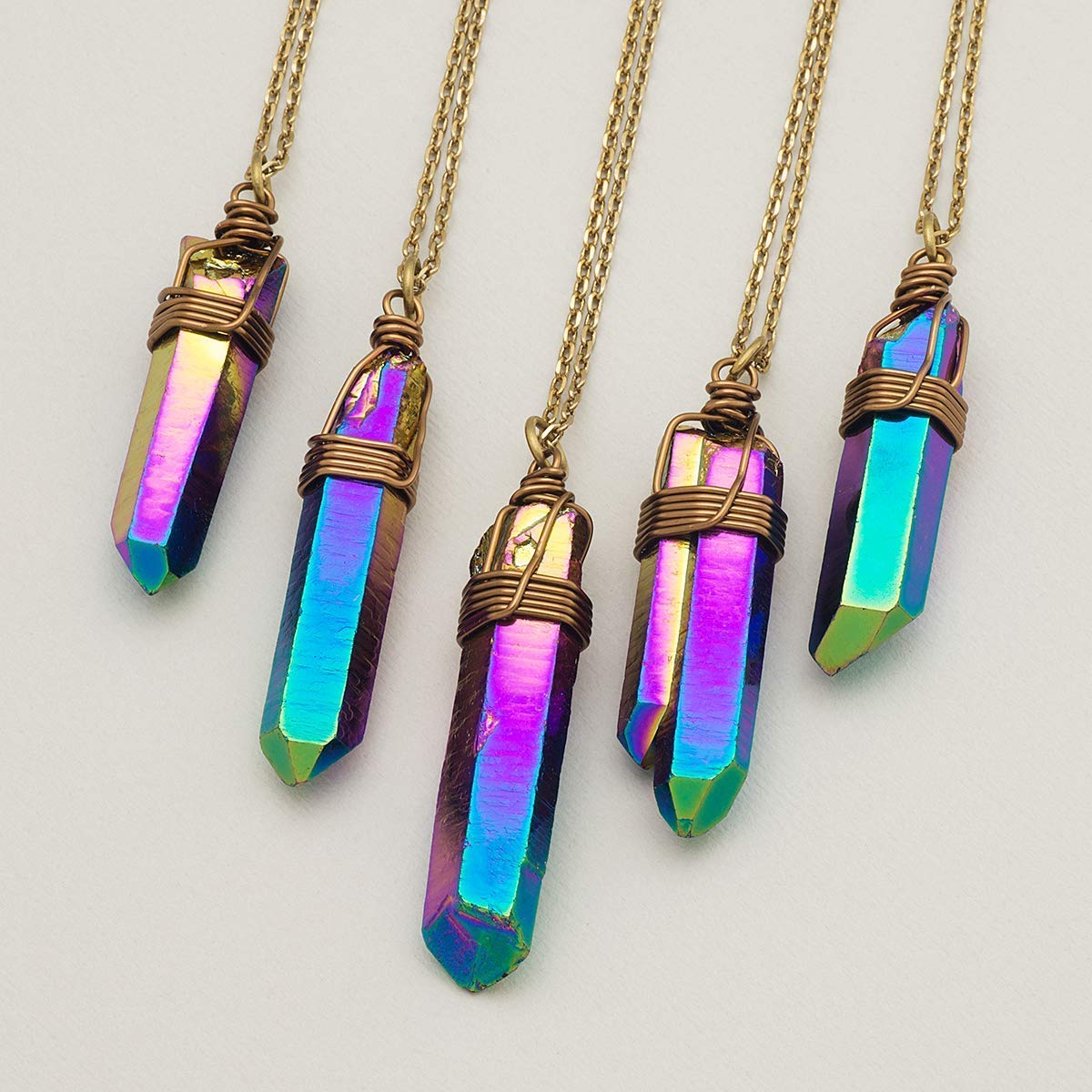 Rainbow Quartz Necklace Titanium Rainbow Aura Quartz Crystal Etsy
