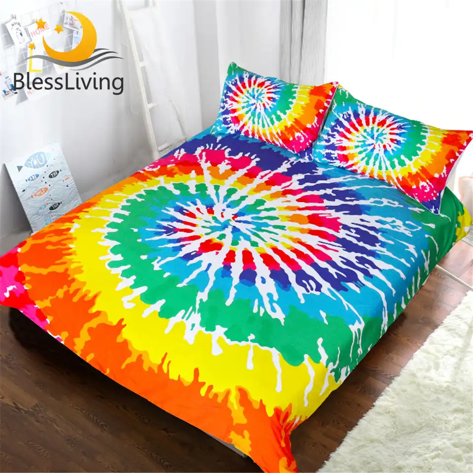 Blessliving Rainbow Tie Dye Set Tempat Tidur Warna Warni Duvet