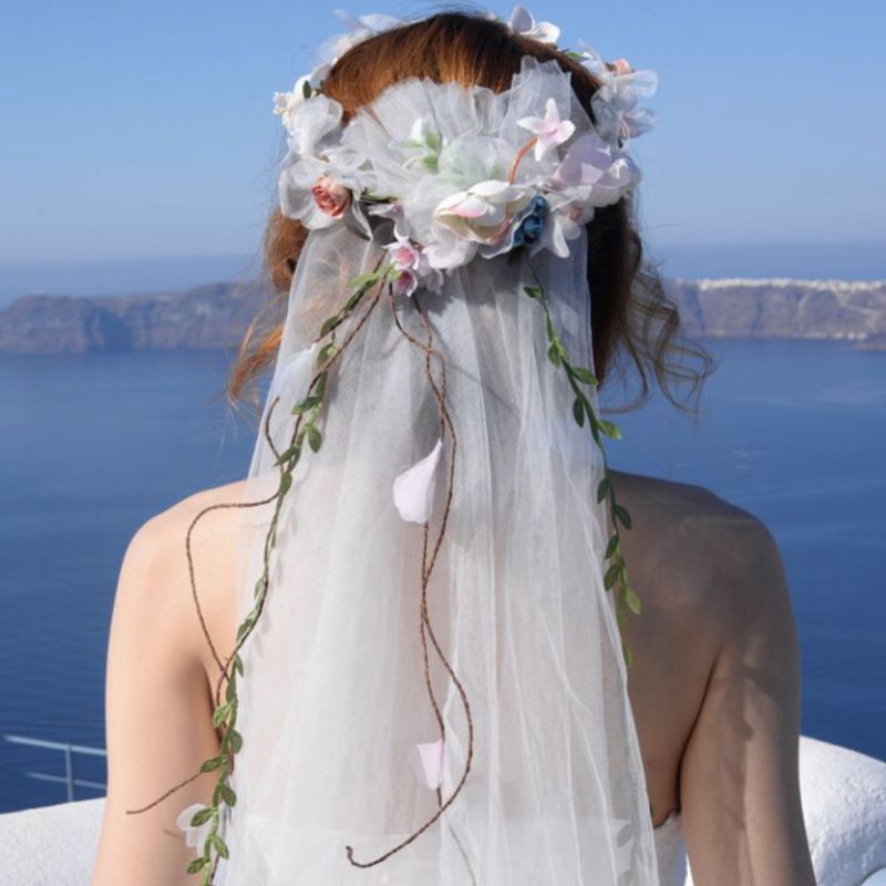 Womens Bridal Wedding Garland Tulle Veil Seaside Holiday Rainbow