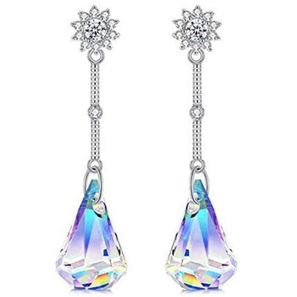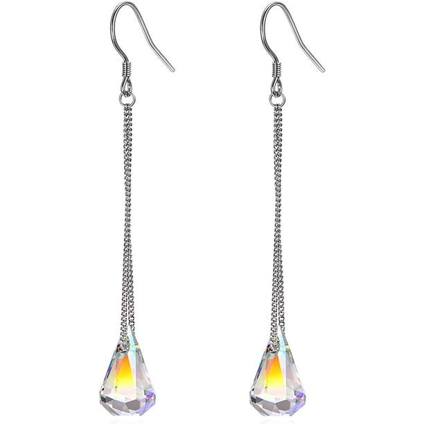 Rainbow White 925 Sterling Silver Mermaid Glass Drop Earrings