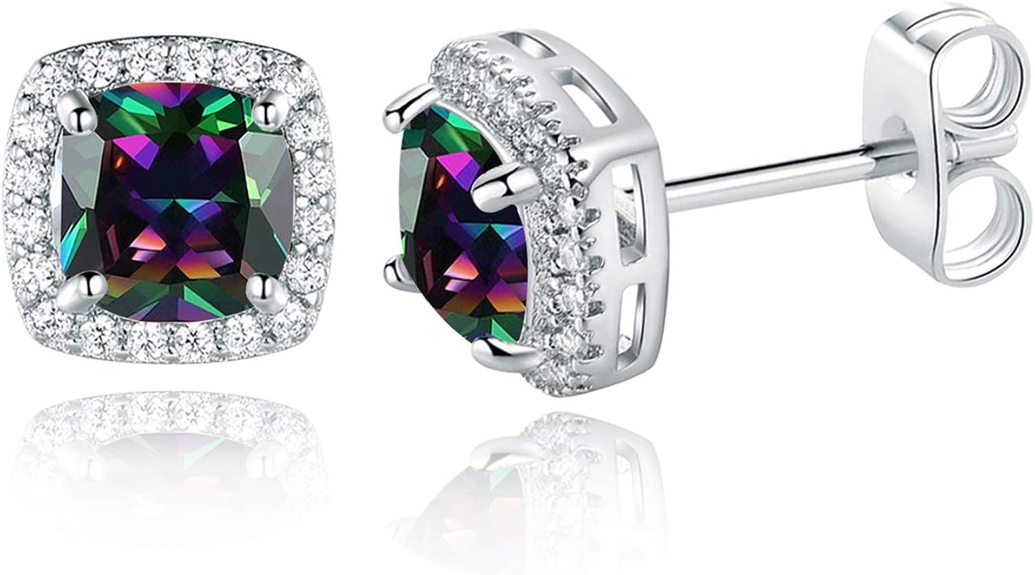 Amazon Com 14k White Gold Plated Cushion Earrings Rainbow Quartz